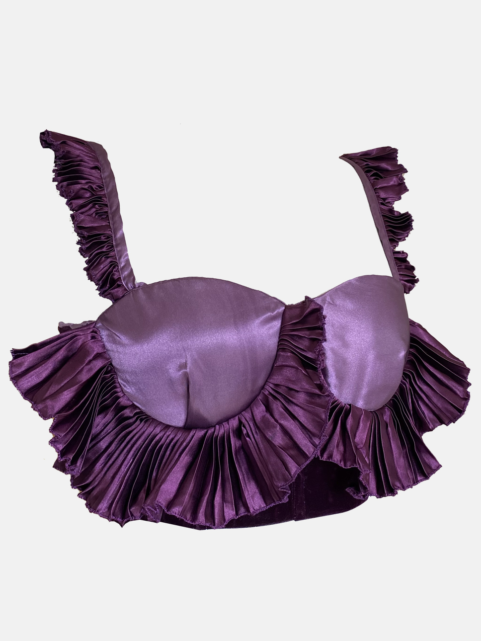 The Popielo bustier boasts a delightful blend of pleats and subtle sheen, capturing the eye with its semi-circular gathers, setting it apart from the ordinary. Crafted from luxurious Velvet, Fiber Satin, and Polyester, the Popielo bustier is a perfect harmony of style and comfort. To keep this exquisite piece in great condition, dry cleaning is recommended.